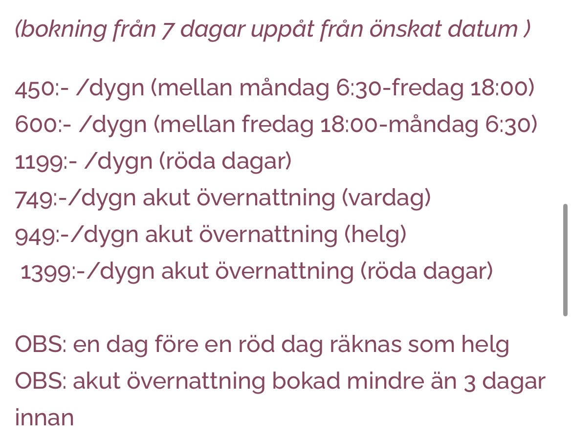 Hundar på pensionatet får min. 5 promenader om dagen, aktivering, lek & mys.Funkar inte din hund med andra hundar eller vill du inte att den umgås med andra hundar så löser vi det i mån av plats och möjlighet.